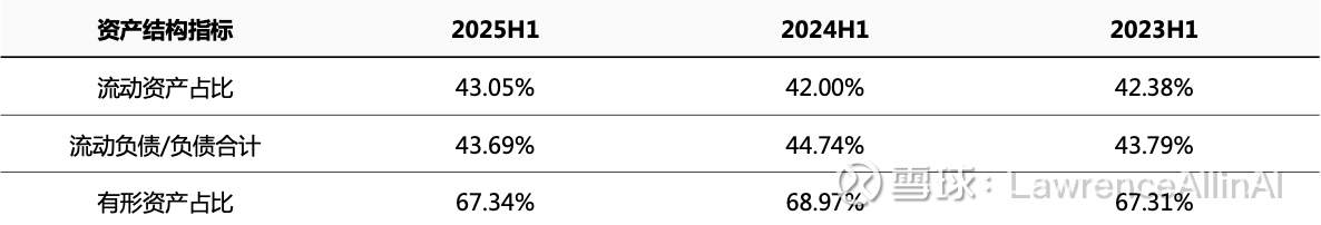2.流动负债占比持续下降,2025H1为43.69%(-1.05pct vs 2024H1),短期偿债压力边际缓解。