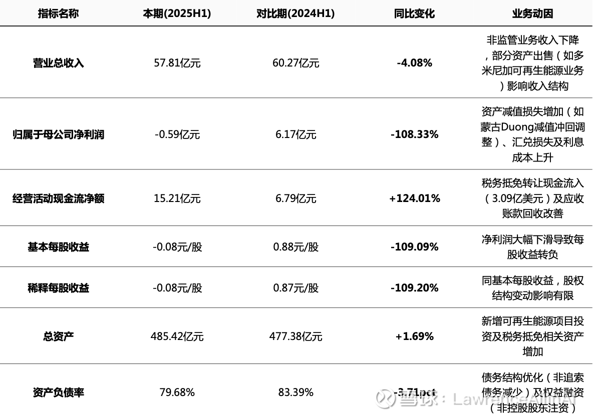 1.盈利恶化:净利润转负主因资产减值冲回调整(蒙古Duong项目估值变动)、汇兑损失(拉美货币波动)及利息成本攀升(债务规模扩大)。