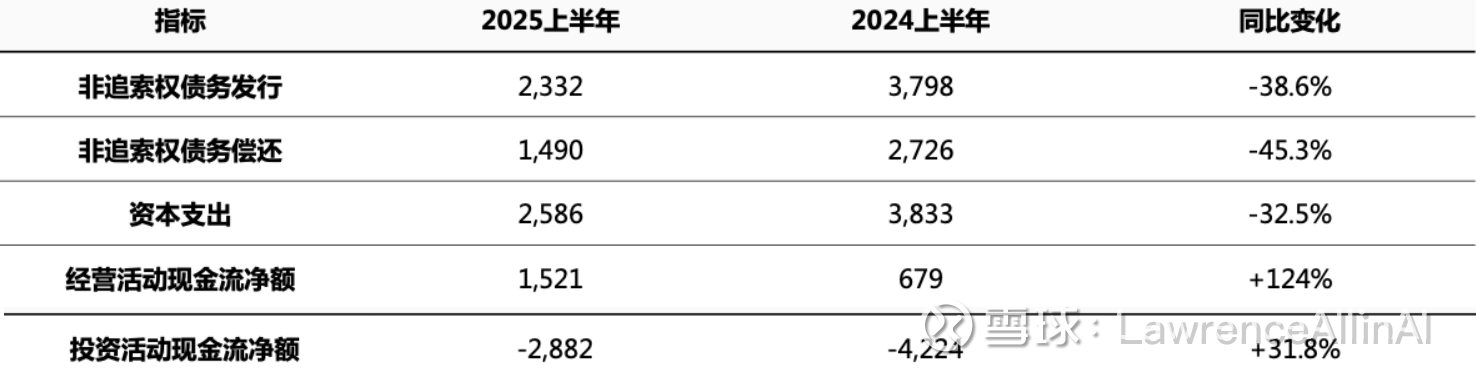 3. 筹资依赖度降低:2025H1融资规模同比减少61.1%,资产负债结构调整明显