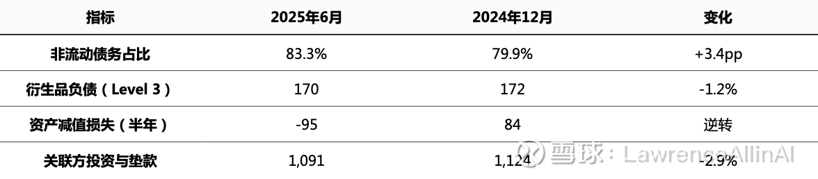 3. 有形资产占比稳定:有形资产占比保持在94%左右(2025H1为94.24%),资产质量基础扎实。