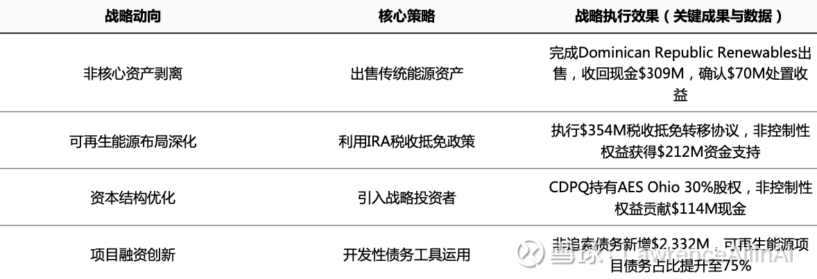结论:AES通过政策套利、资产置换、合作开发三位一体的策略,正在快速完成从传统能源运营商向可再生能源平台的结构性转变。其战略逻辑聚焦于利用制度红利重构现金流,通过资本伙伴关系分散转型风险,最终实现资产负债表的重塑与业务模式升级。