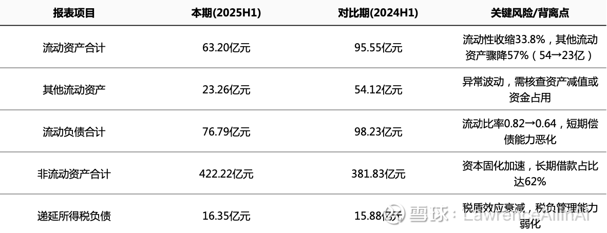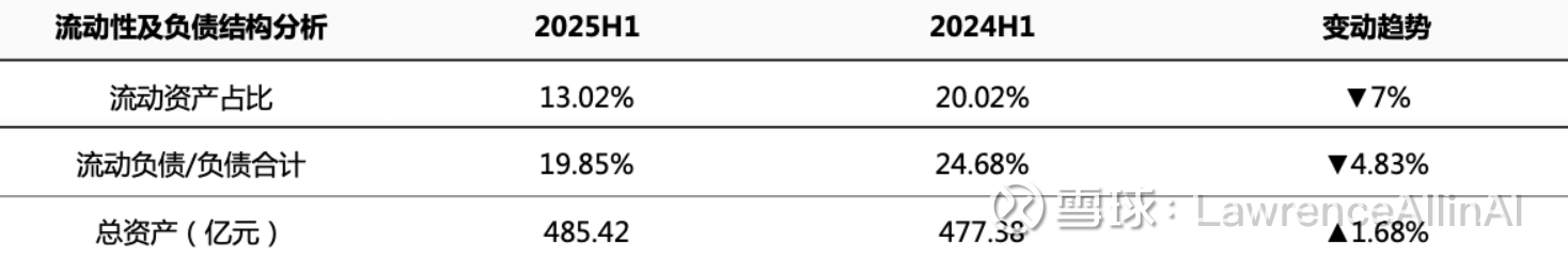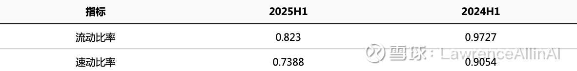 1. 流动比率持续下降:2025H1较上年同期下降15.4%,表明短期资产对负债的覆盖能力减弱