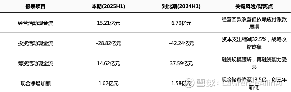 结论:企业呈现"止血-修复"特征,2025H1经营性造血能力显著修复,但自由现金流仍未转正,需持续关注营运资本管理效能与投资回报周期。