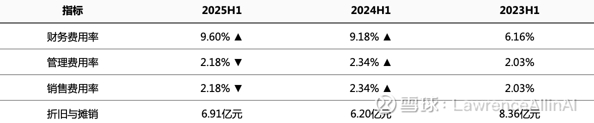 3.资产轻量化矛盾:折旧与摊销金额在2023H1高基数后下降又反弹,但同期财务费用率陡增,可能存在资产置换(如出售重资产转为租赁)导致"折旧减少、利息增加"的结构失衡。