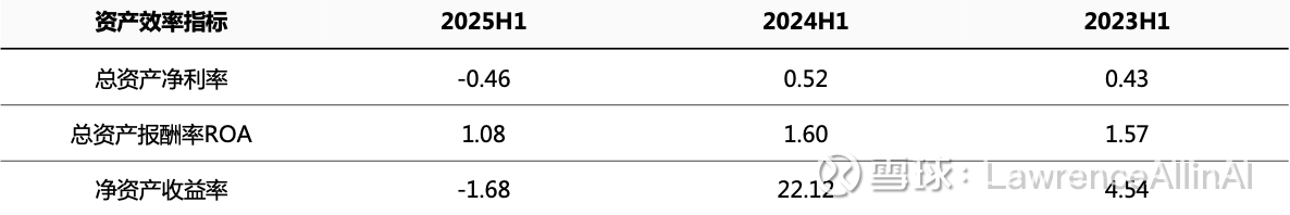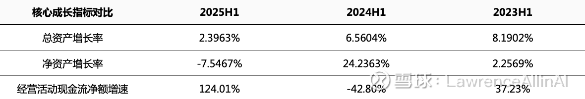 1.总资产扩张持续放缓:总资产增速从2023H1的8.19%逐年下降至2025H1的2.40%,反映投资或并购动能减弱。