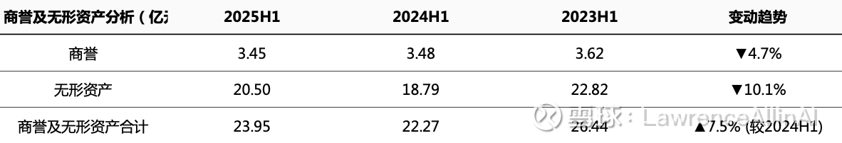 2. 无形资产占比收缩:2025H1无形资产较2023H1下降10.1%,或与资产摊销或处置相关。