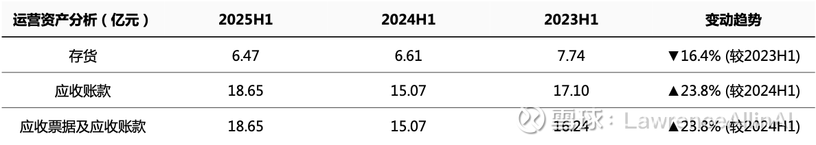 2.应收账款激增需警惕:2025H1应收账款同比增23.8%,可能加大坏账风险或反映销售政策宽松。