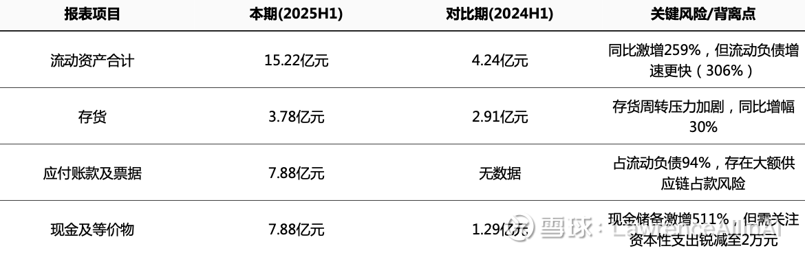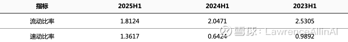 2. 速动比率剧烈波动,2024H1骤降至0.64后回升至1.36,2025H1流动性资产质量存疑