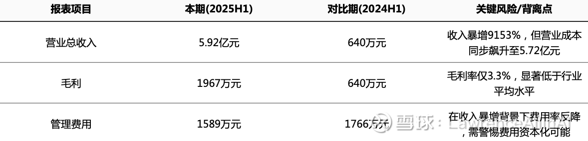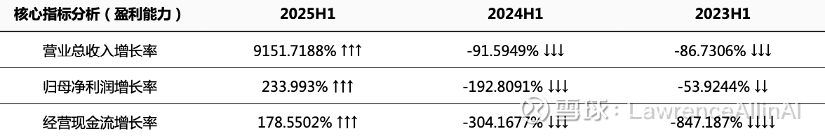1.收入端超高速增长:2025H1营收增速突破9151.7%(基数极低),反映业务模式重构或新市场/产品爆发性突破。