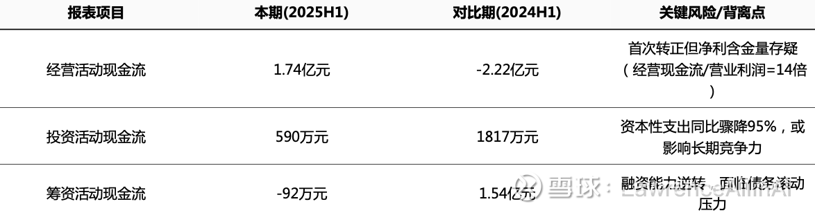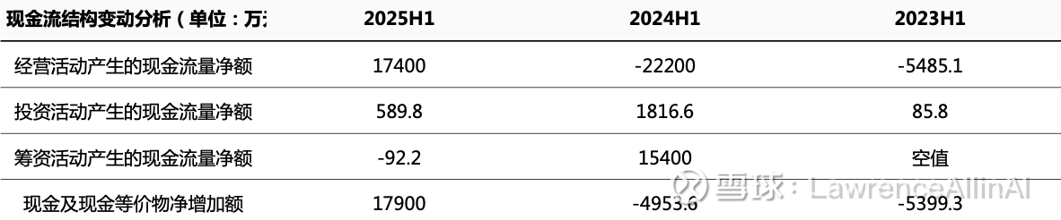 3.历史基数异常波动:2023-2024H1收入、利润、现金流均为深度负增长,提示此前经营存在重大调整或收缩,2025H1或为战略转型后的拐点。
