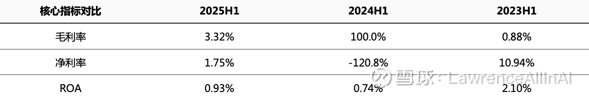 3. 总资产报酬率(ROA)持续下行趋势,2025H1虽环比改善,但较2023H1仍下降56%