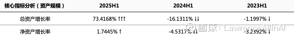 1.总资产爆发式扩张:2025H1总资产增速高达73.4%,远超前两年负增长,可能通过资产收购或业务扩张实现规模突破。