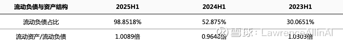 3. 2025H1流动负债增速(86.3%)远超总资产增速(83.6%),资产负债期限错配风险加大