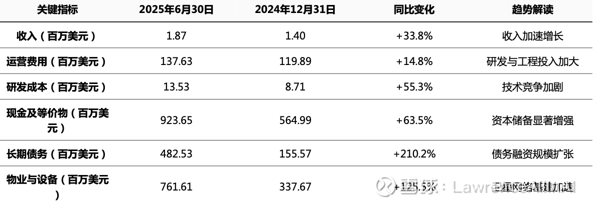 3.资本结构剧烈调整:长期债务增长210.2%至4.8亿美元,叠加现金储备增长63.5%,显示行业进入高杠杆扩张期,企业通过混合融资(股权+债权)支撑卫星星座部署。