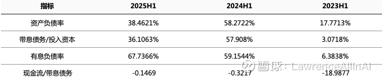 3.资本结构优化迹象:2025H1资产负债率较2024H1下降近20个百分点,显示公司可能通过股权融资或资产重组缓解杠杆压力。