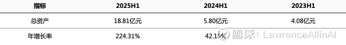 1. 总资产呈现爆发式增长,2025H1较2024H1增长超3倍,资产规模从4.08亿快速扩张至18.81亿