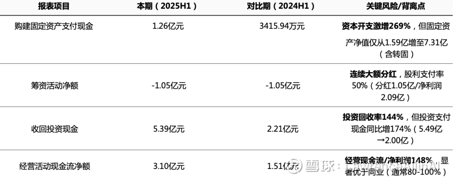 3. 抗风险能力质变:2025H1自由现金流(经营-投资)达1.74亿,首次突破历史峰值