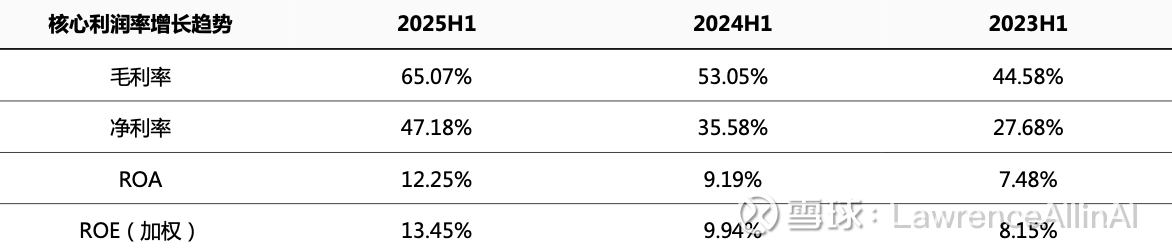 1.毛利率三年间实现20.4个百分点的跨越式增长,2025H1突破65%显示成本控制或产品结构优化成效显著