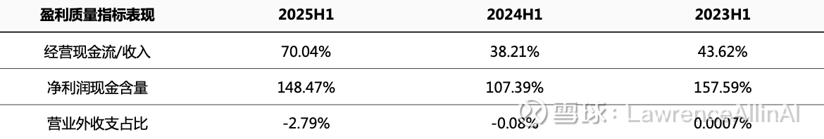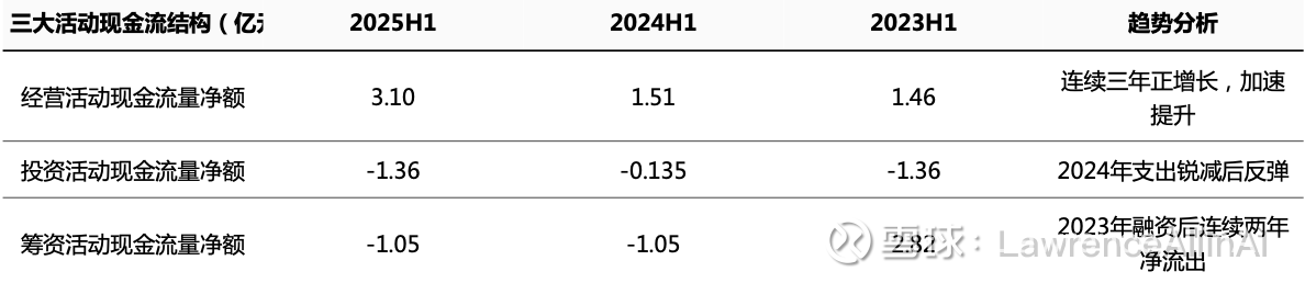 1. 造血能力显著增强:经营活动净现金流三年复合增长率达45.8%,2025H1规模同比翻倍