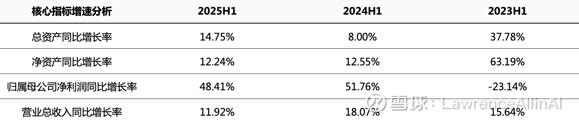 3.收入增速趋稳:营业总收入增速保持在15%-18%区间,2025H1小幅回落至11.92%,或与行业周期性波动相关。