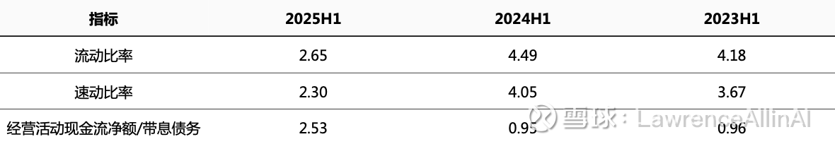 2.现金流对债务覆盖能力显著提升:经营活动现金流/带息债务从2024H1的0.95倍跃升至2025H1的2.53倍,表明经营性现金流对短期债务的覆盖能力大幅改善。