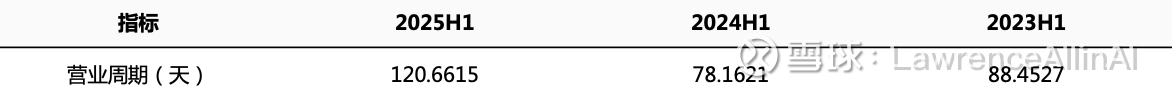 营业周期拉长凸显运营压力:2025H1营业周期增至120.66天(较2024H1延长42天),主因存货周转天数大幅增加(+46天)及应收账款周转效率波动,需关注供应链与销售协同效率。