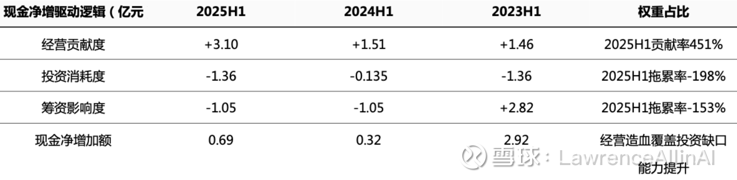 1.内生增长主导:2025H1经营性现金流完全覆盖投资支出(覆盖率228%),相较2023H1的107%显著优化
