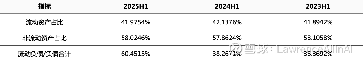1.流动负债激增风险:2025H1流动负债占比大幅升至60.45%(前两年均低于40%),短期偿债压力显著增加。