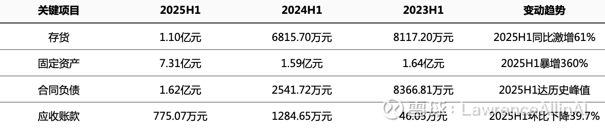 2.合同负债激增释放需求信号:2025H1合同负债达1.62亿元(同比+537%),远超历史水平,可能预示订单量增长或客户预付比例提高,支撑未来收入兑现。