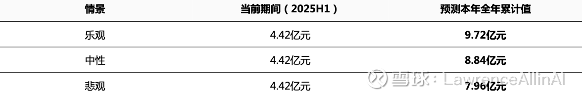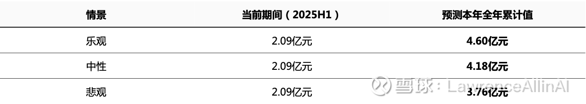 1.营收预测逻辑:基于2025H1营收4.42亿元,乐观/中性/悲观情景分别假设下半年环比增长20%、0%、-20%(参考2025H1较2024H1增速放缓趋势,仅通过已有增速结构推算)。