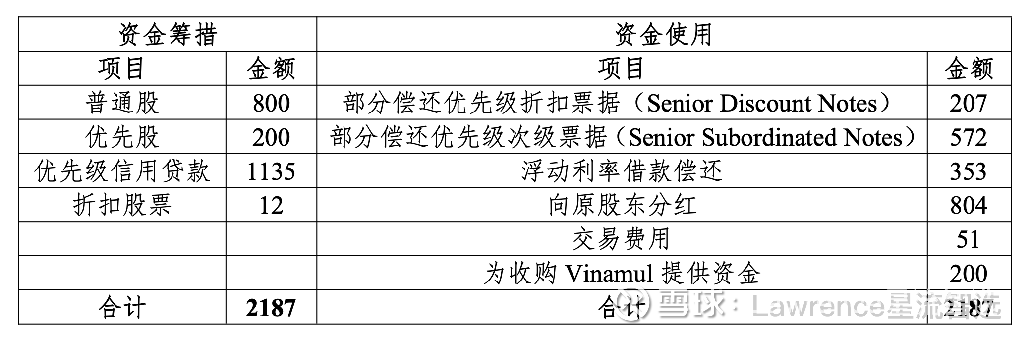 2005年1月,塞拉尼斯公司(Celanese Corporation)再次登陆纽约证券交易所。除了发行普通股、优先股融资外, 塞拉尼斯公司在上市的同时还通过优先级信用贷款(Senior Credit Facilities)借了11.35亿美元,累计募集资金21.87亿美元。这些资金中,约11.32亿美元将用来偿还债务,8.04 亿美元用来向原股东即黑石分红(见表 3)。