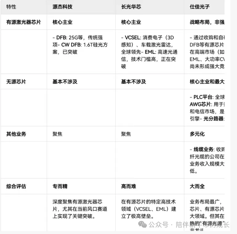 深入对比源杰科技、长光华芯和仕佳光子这三家在光芯片领域各有建树的公司。下面我结合它们最新的动态,用一个表格为您快速梳理核心信息,并补充一些关键的背景逻辑。