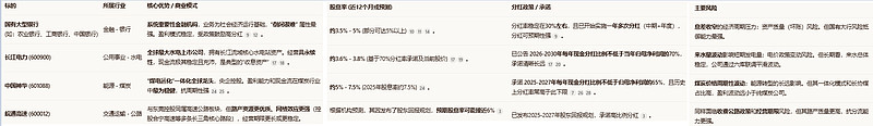 追求绝对稳健与低估值:大型国有银行(工农中建)和全国性水电龙头(长江电力)是核心选择,它们“倒闭很难”的属性最强,估值也处于历史低位。