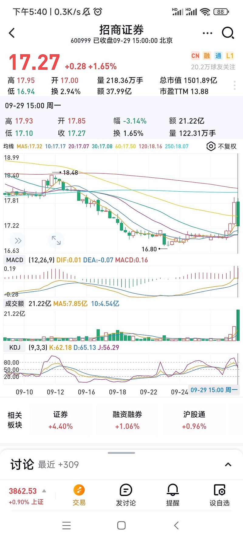 $招商证券(SH600999)$