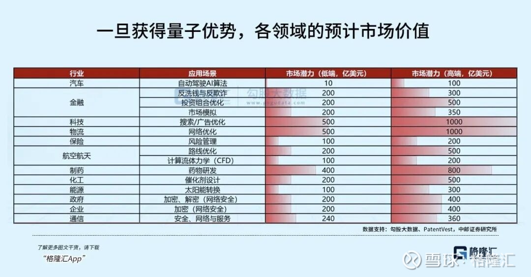 据专业数据测算,商用量子系统部署后,仅金融、科技、物流、制药四大行业,每年就能创造超5000亿美元的经济价值,汽车、航空航天、化工等领域的市场潜力也均达数百亿美元级别。