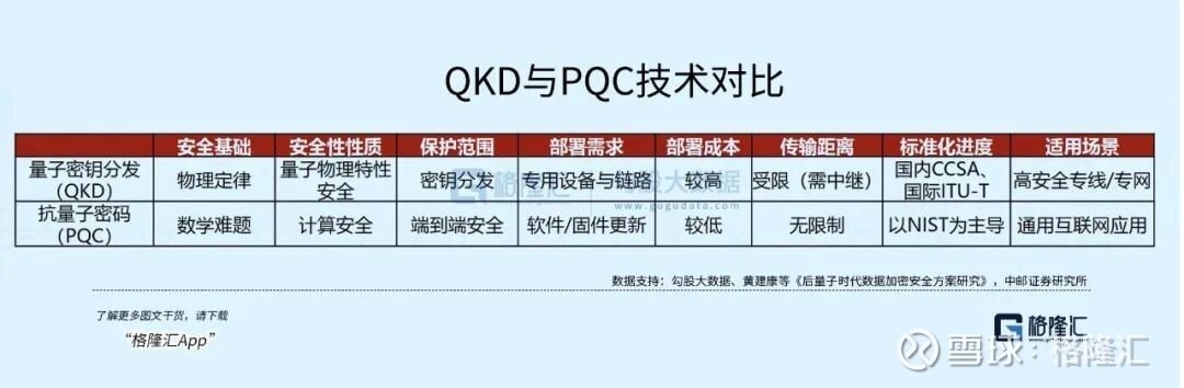 QKD基于量子物理原理实现物理层绝对安全,是密钥分发的最优解,能从根源上杜绝窃听,但需要专用设备和链路,部署成本较高、传输距离受限;