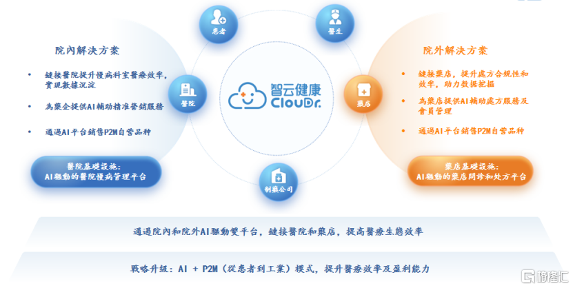 依托多年深耕的院内院外双平台布局,智云健康已搭建起扎实的数字化基建,庞大的场景生态为AI技术落地与P2M变现提供了天然土壤。