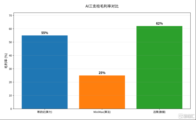 Token的数量增长,并不自动等同于其创造的价值增长。一个直观的对比是毛利率:代表算力环节的寒武纪,其最新毛利率约55%;代表算法环节的MiniMax,毛利率约25%;而代表数据基础设施的迅策,毛利率则高达62%。这“算力、算法、数据”AI三支柱,哪个商业模式更“硬”、更能将稀缺性转化为价值,已不言而喻。