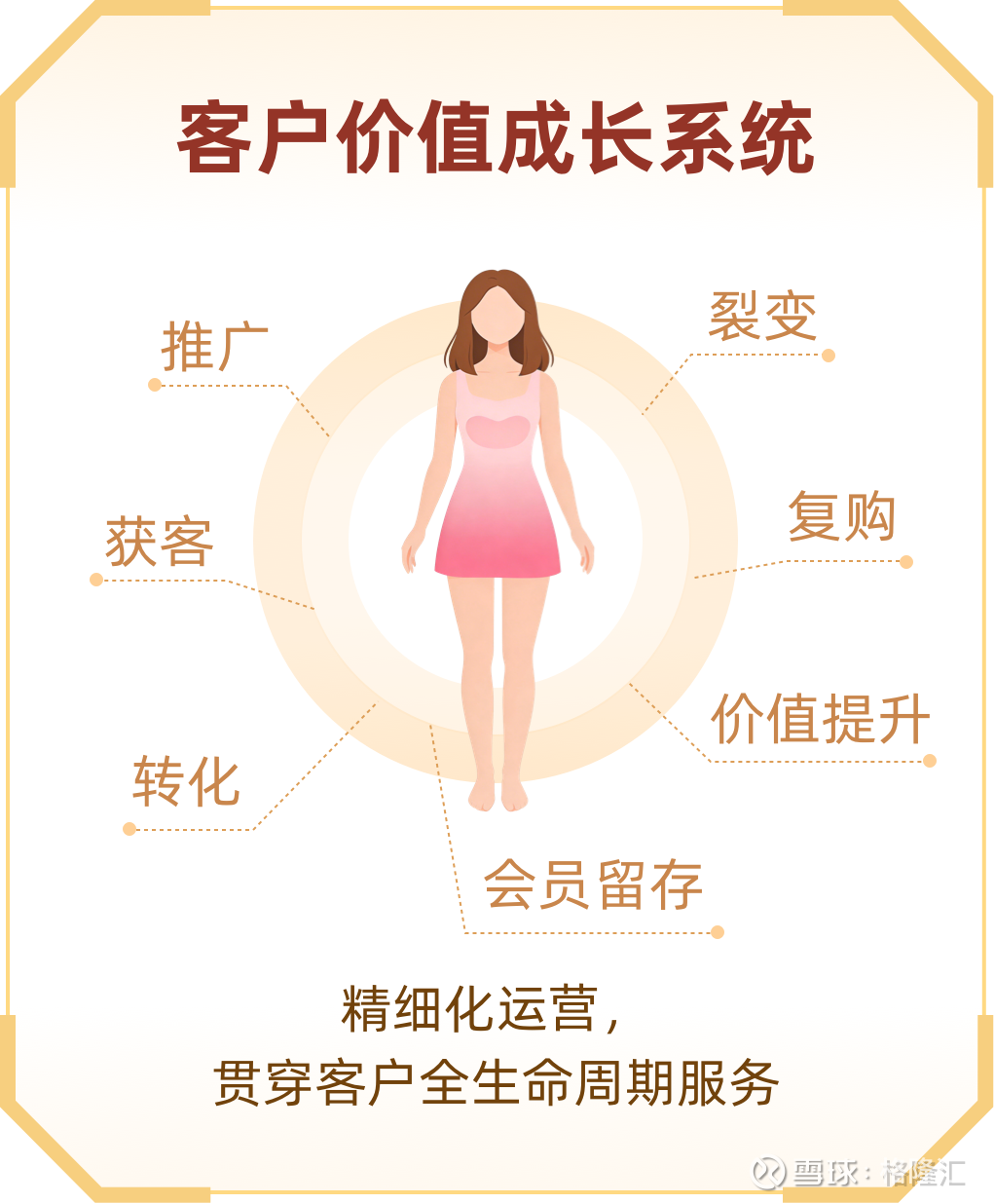 这套系统的精妙之处在于,它构建了覆盖推广、获客、转化、会员留存、价值提升、复购、裂变的全链路精细化运营闭环。