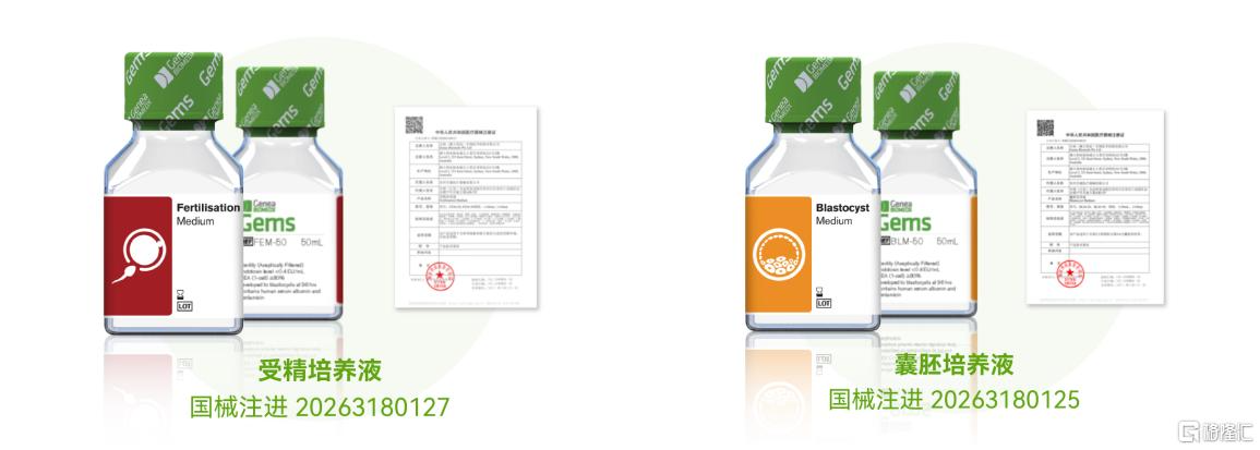 此次获证的受精培养液与囊胚培养液,与今年2月已获批的Gems一步式胚胎培养液、2025年获批的Gems胚胎处理液,共同构成了覆盖“受精→卵裂胚培养→囊胚培养”全流程的Gems全品系培养液矩阵。