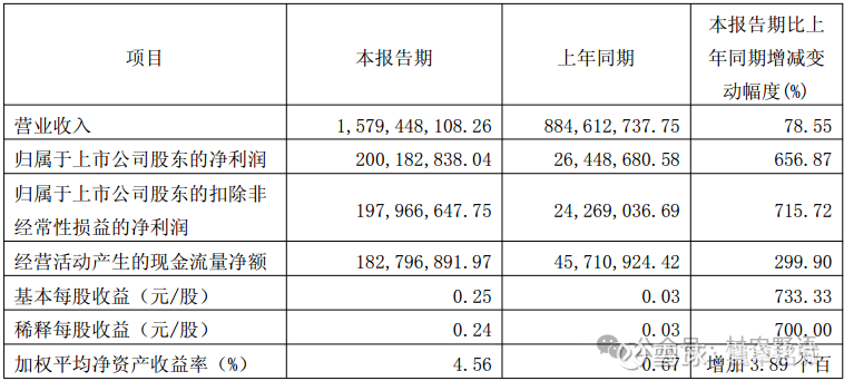 2025年第二季度预计营业收入20.71亿-23.03亿元,同比增长90.17%-111.48%。归母净利润3.11亿-3.49亿元,同比增长344.29%-398.57%;扣非归母净利润3.11亿-3.48亿元,同比增长371.21%-427.27%。