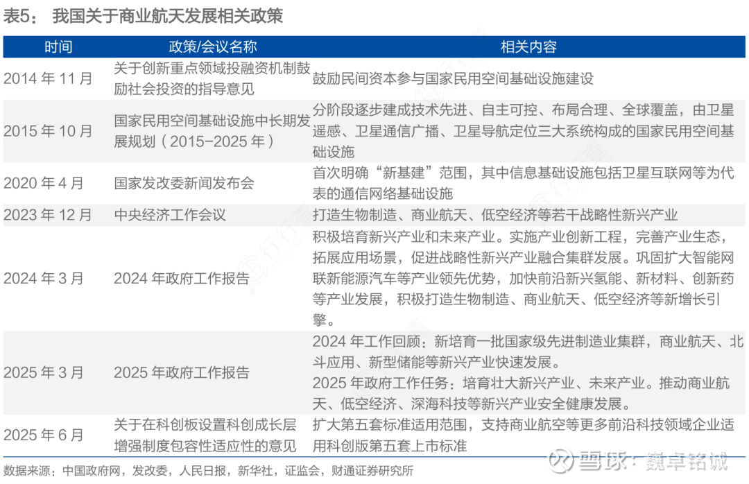 2025年3月的政府工作报告继续强化对商业航天的支持,提出要培育壮大新兴产业和未来产业,推动商业航天、低空经济、深海科技等安全健康发展。