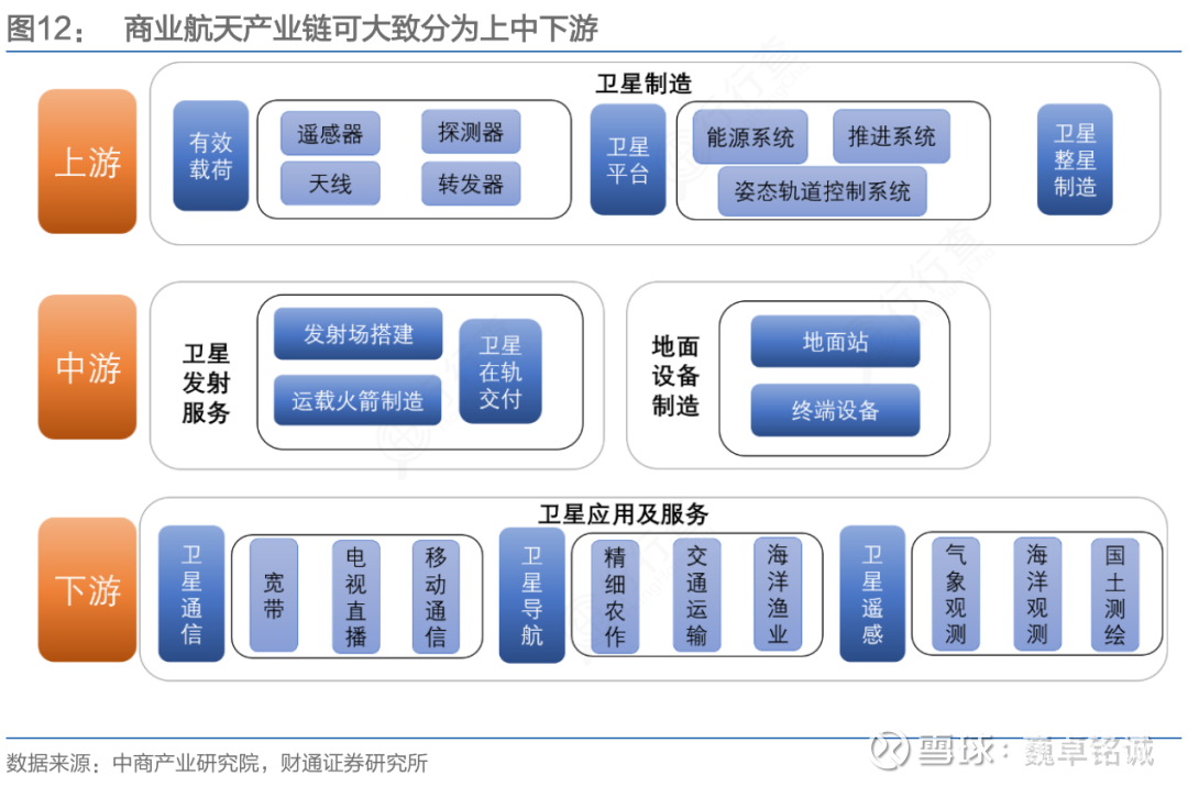 下游的卫星载荷及应用服务对商业发射产业链的整体价值分配具有重要影响。卫星运营和服务覆盖通信、导航、遥感等多个领域,面向政府、行业和个人客户提供多样化解决方案。