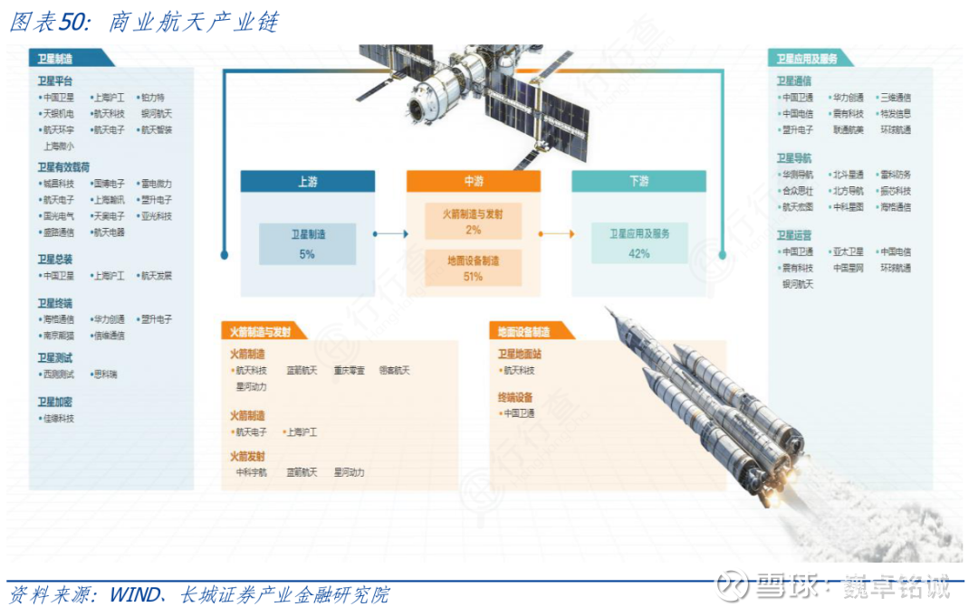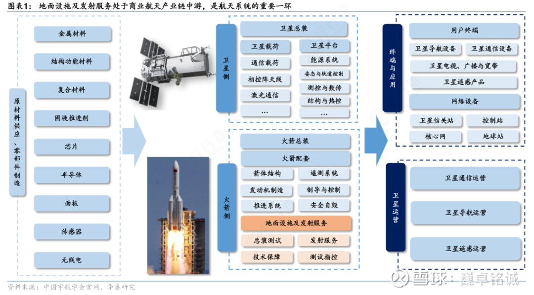 中游环节主要包括商业发射、卫星测控、地面设备及终端以及卫星运营与数据增值等。