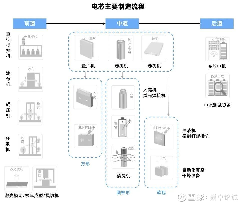 在固态电池中段设备中,叠片机有望取代卷绕机占据主导地位。