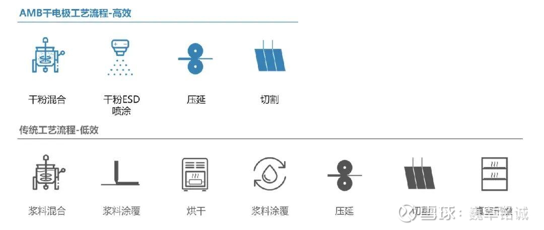 AMBatteries干电极技术与传统锂离子电池生产流程对比: