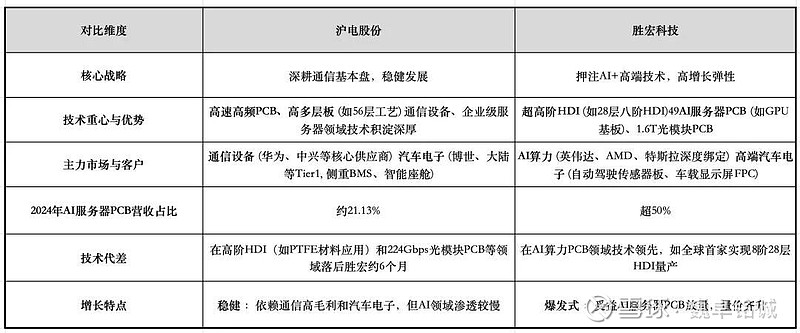 4.沪电股份也并非放弃AI相关市场 ,其泰国生产基地已进入小规模量产阶段,聚焦于高多层PCB和HDI板等中高端产品 。公司投资43亿元建设人工智能芯片配套高端PCB项目,这些都表明沪电股份也在积极应对AI带来的需求,只是其切入点和技术路线可能与胜宏科技有所不同,更侧重于发挥自身在高速多层板方面的优势。