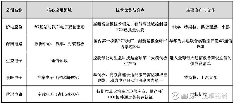 大陆头部厂商如沪电股份、景旺电子、世运电路等,已经通过了特斯拉、比亚迪等领先车企的认证。世运电路是特斯拉最大的汽车PCB供应商,车载PCB占比超50%,并已能量产4阶HDI板且通过英伟达认证;景旺电子的动力电池FPC市占率国内第一,客户包括特斯拉和上汽大众。