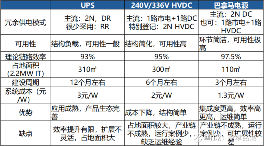 同样2.2MW IT负载,HVDC的成本约2元/W,比UPS的3元/W便宜;占地面积300㎡,比UPS小;建设周期6个月,也更快。