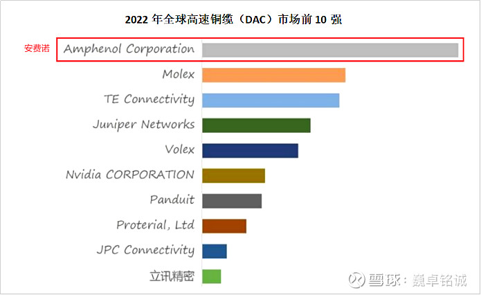 其中,大有来头的当属安费诺,它常年在全球高速铜缆竞争市场稳居第一。